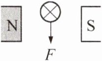 2. 如图,$\otimes$表示导线中的电流方向垂直于纸面向里,$\odot$表示导线中的电流方向垂直于纸面向外,$F$是磁场对通电导线的作用力. 下列图中,磁场对通电导线的作用力与$F$的方向相同的是 ( )