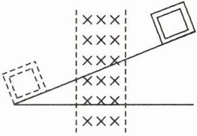 11. 如图所示,当金属框沿光滑绝缘斜面的顶端由静止开始滑到底端时,具有的动能为E₁;若在虚线区域内加上一个方向为“×”的垂直纸面的磁场,其他条件不变,金属框滑到底端时,具有的动能为E₂. 请判断E₁与E₂的大小关系:________,并简要说明判断的理由:________________.