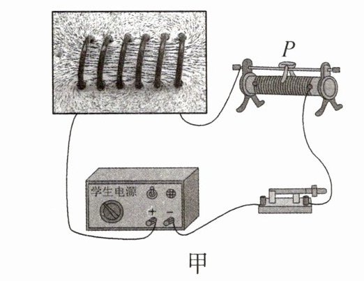 (2)在玻璃板上均匀地撒满铁屑,将螺线管连入电路,闭合开关,轻敲玻璃板面,观察到铁屑分布情况如图甲所示,铁屑的分布情况与________磁体周围铁屑的分布情况相似.