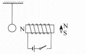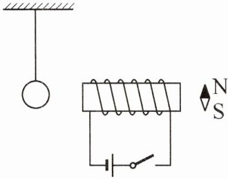 (2)闭合开关后,竖直悬挂的小铁球向右运动,小磁针发生转动,这说明通电螺线管周围存在________.