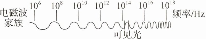 (2)无线电波和可见光的频率用 f 表示,由图可知 f无线电波________f可见光;它们在真空中的传播速度 v无线电波________v可见光.(均选填“>”“<”或“=”)