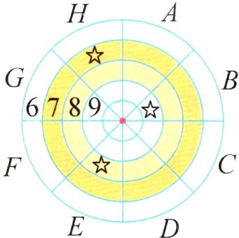 5. 陈老师在靶子上设计了一种确定位置的方法。如图,靶子上有三颗“☆”,其中一颗在H7区域,其他两颗“☆”所在的区域分别是( )和( )。