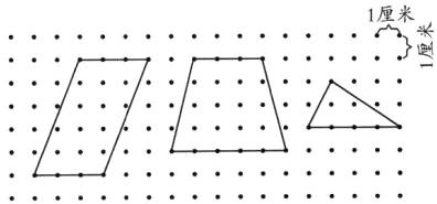 3. 在下面的点子图上画一个底为3厘米、高为5厘米的平行四边形;画一个上底为3厘米、下底为5厘米、高为4厘米的等腰梯形;画一个底为4厘米、高为2厘米的三角形。(6分)