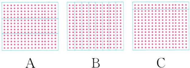 (2)在计算$15\times16$时,文文使用的方法是$15\times2\times8$,下面的点子图中,( )能体现这种思路。