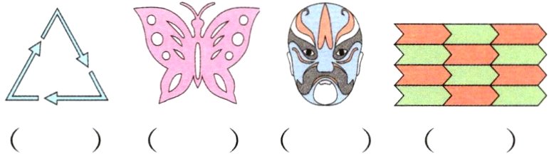 1. 下面图形中是轴对称图形的在括号里画“〇”,若可以通过平移得到的在括号里画“△”,若可以通过旋转得到的在括号里画“□”。