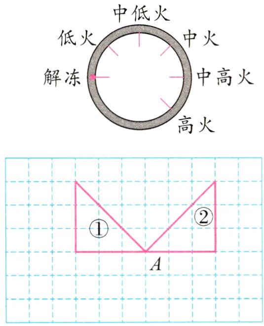 2. 下图是微波炉的调温旋钮,从解冻调到中高火,需要按( )时针方向旋转( )°。