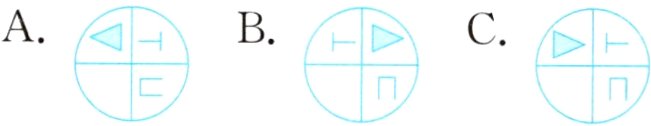 11. 亮点原创 如图,大正方形被分成4个小正方形,每个小正方形里都有一个图案。3秒后,上、下的图案互换,又过3秒,左、右的图案互换,再过3秒,上、下的图案互换……请你画出1分钟后大正方形里的图案。