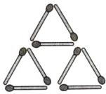 6. 新素养 空间观念 下图是用9根火柴棒摆成的3个等边三角形,现在只移动其中的3根,使3个等边三角形变成5个。你能办到吗?请画出移动后的示意图。
