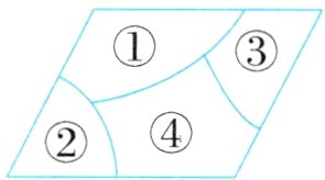 4. 新素养 几何直观 小明不慎将一块平行四边形玻璃打碎成如图的四块。为了能在商店配到一块与原来相同的平行四边形玻璃,他带了两块碎玻璃。这两块碎玻璃的编号应该是( )和( )。(填序号)