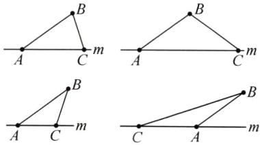 6.(扬州市江都区)如图,线段AB的端点A在直线m上(AB与m不垂直),如果在直线m上另找一点C,使三角形ABC是等腰三角形,则这样的点C有( )个。