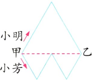 9. 如图,从甲地到乙地有两条不同的路可走,小明和小芳以同样的速度同时从甲地出发,( )到达乙地。(图中三角形均为等边三角形)