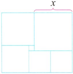 5. 下图的长方形被分割成6个正方形,已知中央小正方形的面积为1平方厘米,求原长方形的面积。