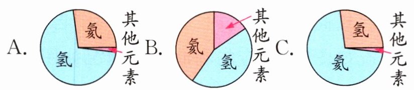 2. 当前太阳的组成是氢约占71%,氦约占27%,其他元素占2%。下面扇形统计图( )能正确地表示这个信息。
