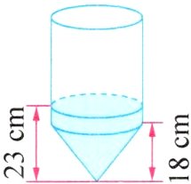 11 解析:容器倒过来时,原来圆柱部分的水高度不变,是23 - 18 = 5(厘米),圆锥部分高18厘米的水倒入圆柱,水的高度变为18÷3 = 6(厘米),合起来是5 + 6 = 11(厘米)。
