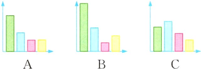 四位同学的得票情况如右面的扇形统计图。若改成条形统计图,能反映实际情况的是( )。