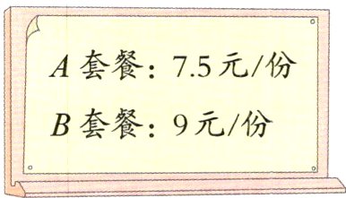 4. 新趋势 图表信息 向阳社区食堂的套餐收费如下图。李叔叔一周(7天)的中午、晚上均在社区食堂就餐,每次选择一个套餐。李叔叔本周在此共消费117元,A、B套餐各选了几次?