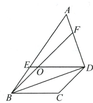 24 解析:从题图中可以看出,三角形 ABF 与三角形 ABD 的高相等,$AD = 3AF$,则三角形 ABD 的面积是三角形 ABF 面积的 3 倍;同理可得,三角形 ABD 的面积是三角形 BDE 面积的 3 倍。由此可以推出,三角形 ABF 的面积等于三角形 BDE 的面积。若从这两个三角形中同时减去三角形 BOE,则剩下的图形面积相等,即四边形 AEOF 与三角形 BOD 的面积相等。因为三角形 BOD 的面积是平行四边形 BODC 面积的一半,所以四边形 AEOF 的面积也是平行四边形 BODC 面积的一半。四边形 AEOF 的面积为$48÷2 = 24$(平方厘米)。