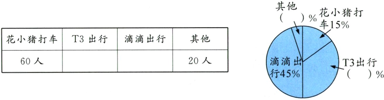 1. 新情境 网约车 某市网约车平台有“滴滴出行”“T3出行”“花小猪打车”等,某调查机构就“最喜欢乘坐的网约车”随机抽取一些人进行调查,结果如下(不完整):