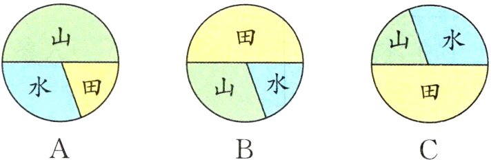 2. 亮点原创 江苏省宜兴市有“三山二水五分田”之称,如果用扇形统计图表示该市的地形分布,那么下面正确的是( )。