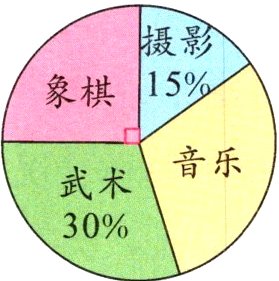 3. 下面是某小学六年级学生参加摄影、象棋、武术、音乐四个兴趣小组人数的扇形统计图,下面说法错误的是( )。