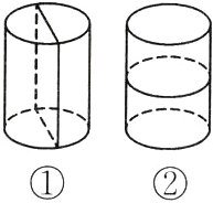 4. 将一个底面直径是8分米、高是10分米的圆柱,沿底面直径垂直割开(如图①),它的表面积会增加( )平方分米;如果将它横切成两段(如图②),那么它的表面积会增加( )平方分米。