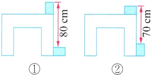 6.75 解析:设桌子的高度为h厘米,长方体正对我们的面的长是a厘米,宽是b厘米。由题图①可知,h - b + a = 80,由题图②可知,h - a + b = 70。所以(h - b + a)+(h - a + b)=80 + 70,则2h = 150,h = 75。