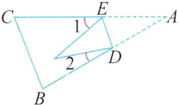 如图,将三角形纸片ABC沿DE折叠,得到∠1、∠2,已知∠A = 30°,则∠1+∠2=( )°。