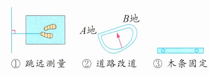 2. (1) 新情境 真实生活 下面三个日常现象,可以用“两点之间,线段最短”来解释的是( )。