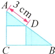 5. 如图,直角三角形ABC中的空白部分是正方形,且正方形的一个顶点D在直角三角形的斜边上。已知涂色部分的面积和是6平方厘米,求线段BD的长。