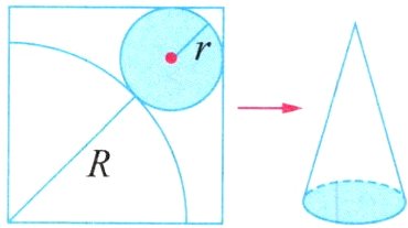5. 在正方形铁皮上剪下一个圆和一个扇形,恰好围成一个圆锥模型(如图)。若圆的半径为r,扇形的半径为R,则R是r的( )倍。