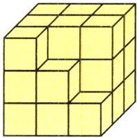 3. 一个表面涂成黄色的木制模型,正好可以将它分割成24个棱长是1厘米的小正方体(如图)。这个木制模型的表面积是( )平方厘米;只有三个面是黄色的小正方体有( )个。