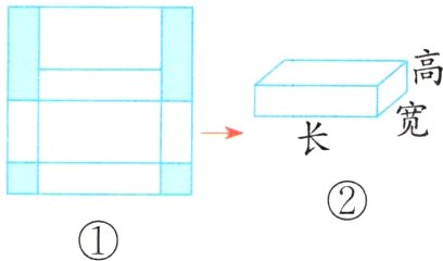 5. 新素养 空间观念 图①是一个边长为60厘米的正方形纸板,剪掉涂色部分后将其折叠成如图②的长方体盒子,已知该长方体的宽是高的2倍,则它的体积是( )立方厘米。