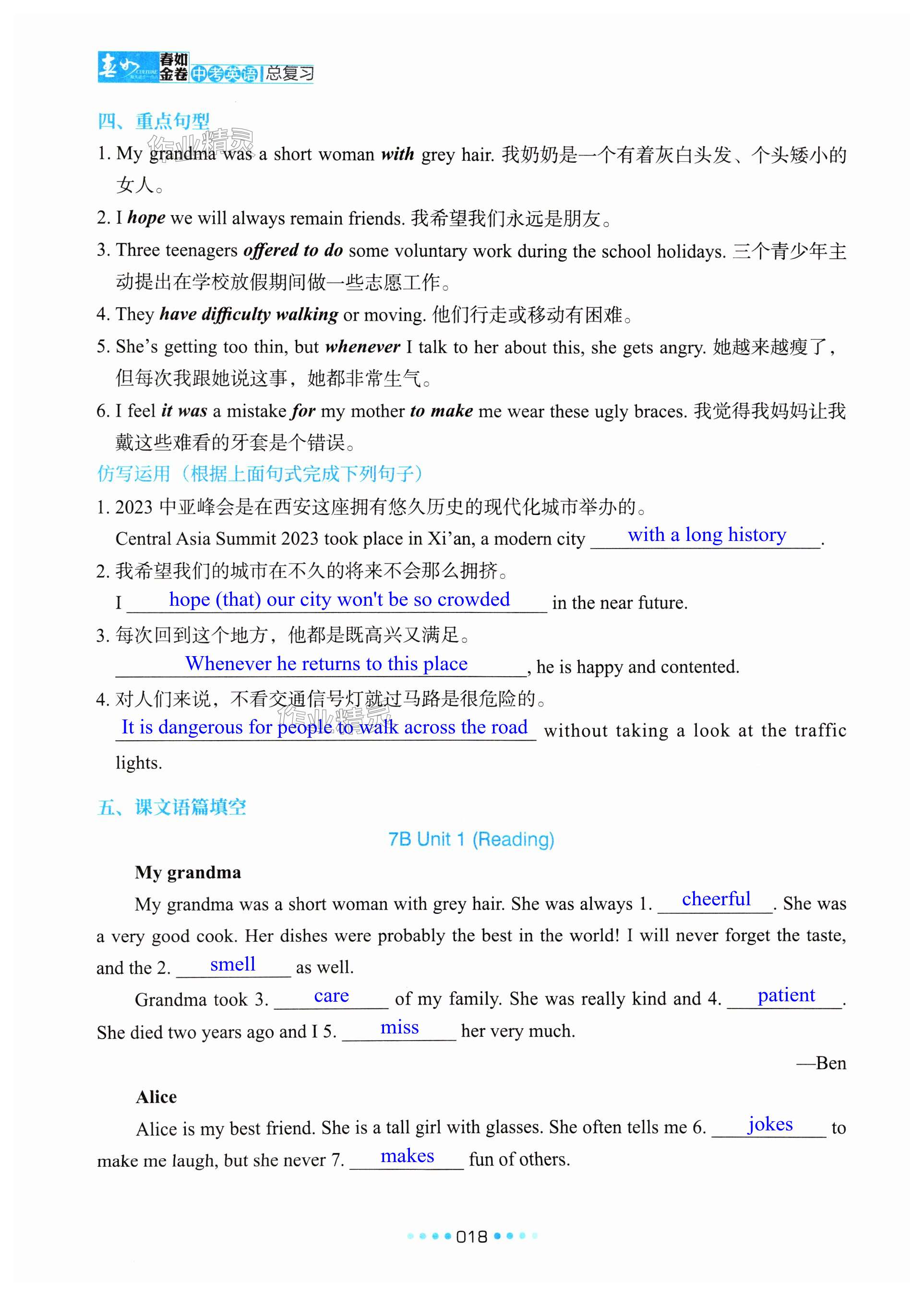 注:目前有些书本章节名称可能整理的还不是很完善,但都是按照顺序排列的,请同学们按照顺序仔细查找。练习册 2025年春如金卷中考英语总复习沪教版 答案主要是用来给同学们做完题方便对答案用的,请勿直接抄袭。