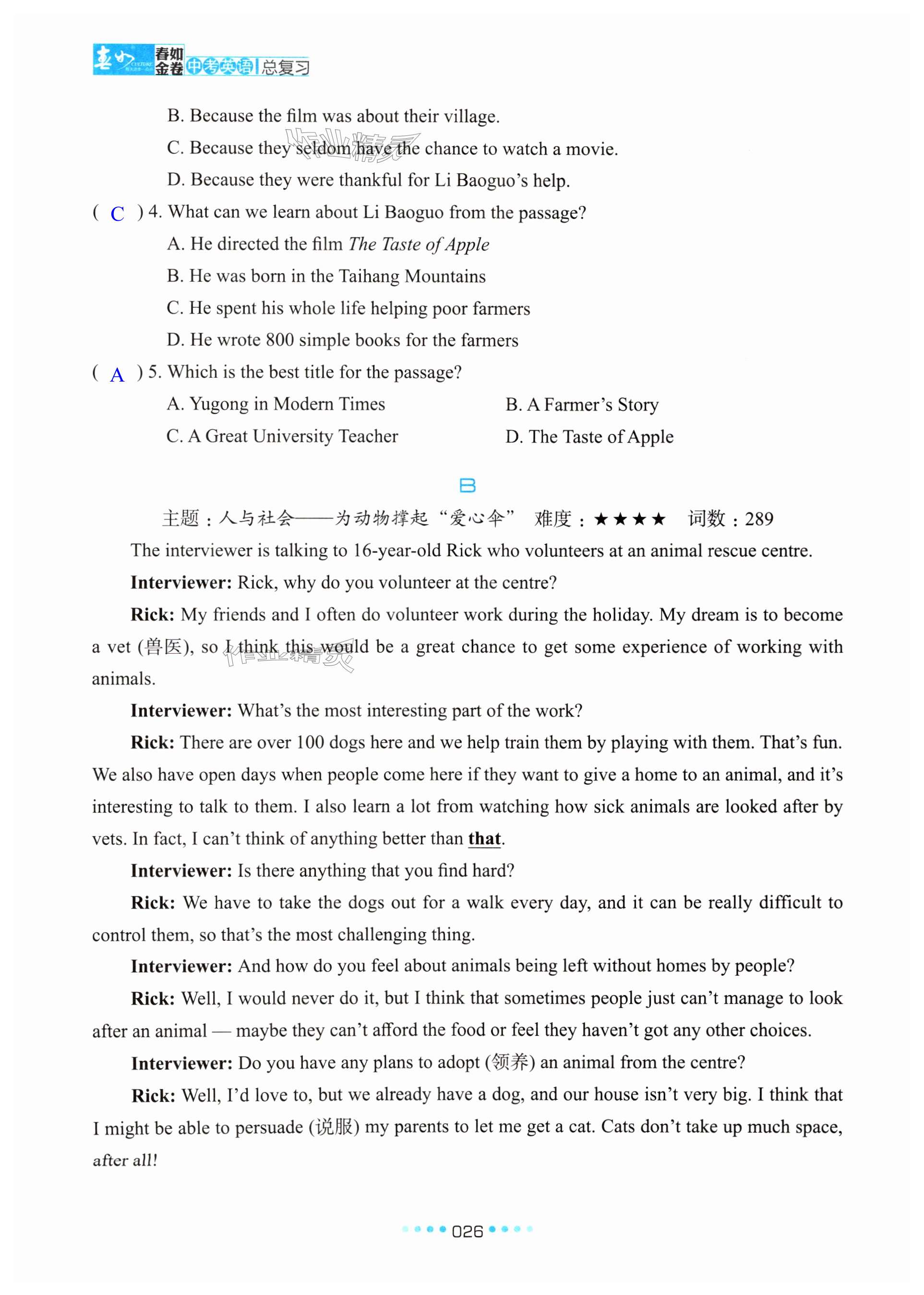 注:目前有些书本章节名称可能整理的还不是很完善,但都是按照顺序排列的,请同学们按照顺序仔细查找。练习册 2025年春如金卷中考英语总复习沪教版 答案主要是用来给同学们做完题方便对答案用的,请勿直接抄袭。