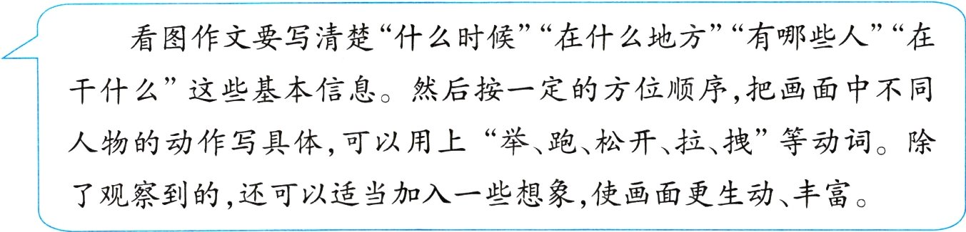 2. 观察时还要展开想象:图画上的人物可能会说些什么?可能会想些什么?