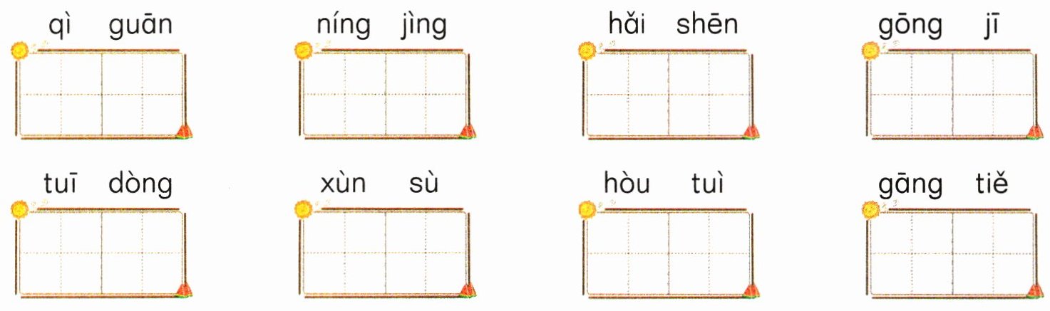 二、看拼音,写词语。