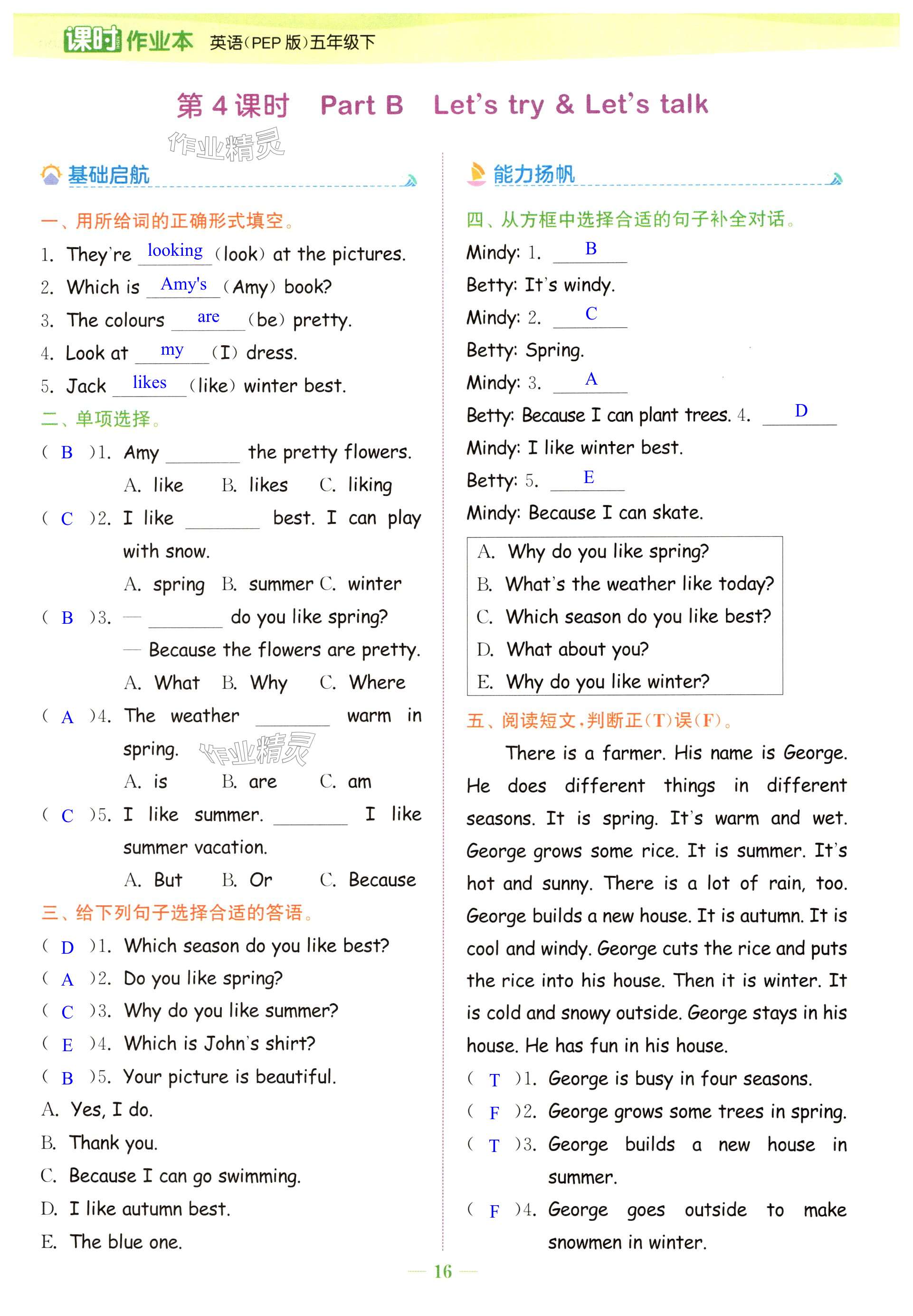 注:目前有些书本章节名称可能整理的还不是很完善,但都是按照顺序排列的,请同学们按照顺序仔细查找。练习册 2025年通城学典课时作业本五年级英语下册人教版 答案主要是用来给同学们做完题方便对答案用的,请勿直接抄袭。
