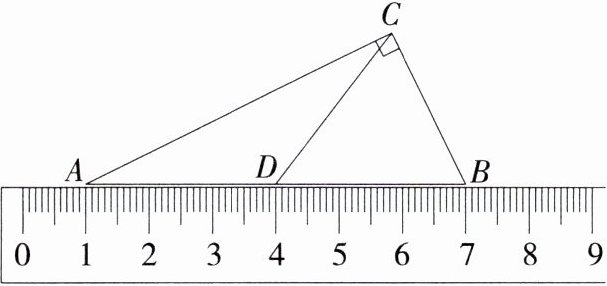 8.(2024广西南宁十八中期中)一技术人员用刻度尺(单位:cm)测量某三角形部件的尺寸.如图所示,已知∠ACB = 90°,点D为斜边AB的中点,点A、B对应的刻度分别为1、7,则CD = ________cm.