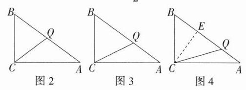 ③如图 4,若 $CQ = CB$,过点 $C$ 作 $CE\perp AB$ 于点 $E$,则 $BE = EQ$,$S_{\triangle ABC}=\frac{1}{2}AC\cdot BC=\frac{1}{2}AB\cdot CE$。