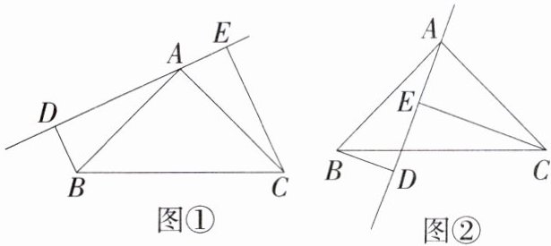 9.(2024湖南邵阳新宁期中,26,★★☆)如图,在△ABC中,AB = AC,DE是过点A的直线,BD⊥DE于点D,CE⊥DE于点E.