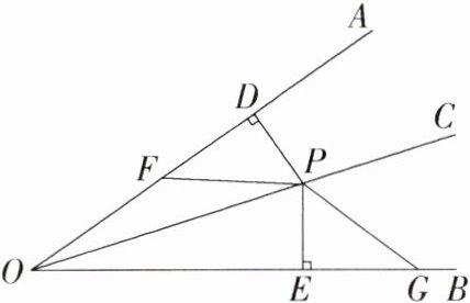 证明 在Rt△PFD和Rt△PGE中,$\begin{cases}PF = PG\\DF = EG\end{cases}$,