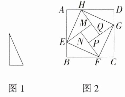 15.图2是由八个图1这样形状、大小完全相同的直角三角形拼接而成的,记正方形ABCD的面积为$S_{1}$,正方形EFGH的面积为$S_{2}$,正方形MNPQ的面积为$S_{3}$,若$S_{1}+S_{2}+S_{3}=15$,则$S_{2}$的值是________.