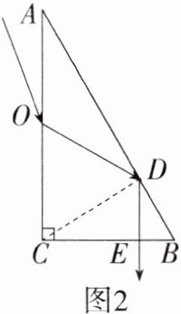 10.[跨物理·光的折射]图1为光学直角棱镜,其截面为直角三角形ABC(如图2),AB所在的面为不透光的磨砂面,∠ACB = 90°,∠A = 30°,BC=8 cm.现将一束单色光从AC边上的O点射入,折射后到达AB边上的D点,恰有CD⊥AB,再经过反射后(即∠CDE = ∠ODC),从BC边上的E点垂直于BC射出,则光线在棱镜内部经过的路径OD+DE的总长度为 ( )