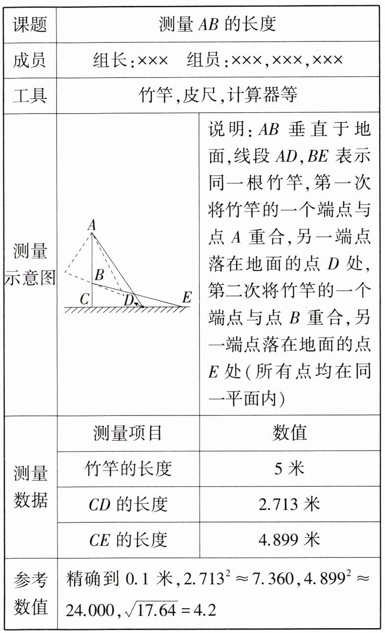 根据以上测量结果,请你帮助该“奋进”小组求出AB的长度.