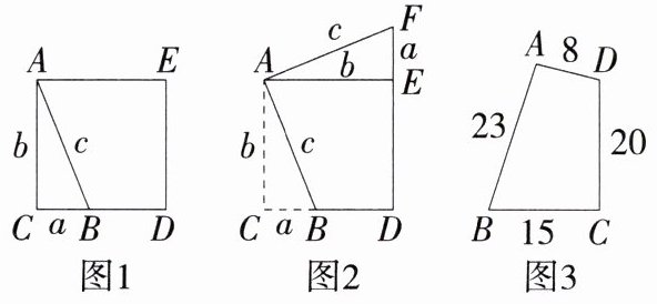 (2)一个零件的形状如图3所示,按规定这个零件中∠A和∠C都应是直角,小明测得这个零件各边的尺寸(单位:cm)如图3所示,请问这个零件符合要求吗? 并说明理由.
