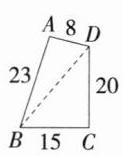 AB² + AD² = 23² + 8² = 529 + 64 = 593,且625 ≠ 593,