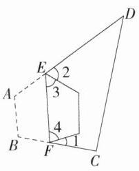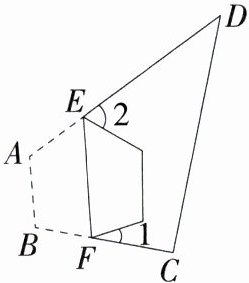 7.(2023河南郑州枫杨外国语学校期末,16,★★☆)如图,E,F分别是四边形ABCD的边AD,BC上的点,连接EF,将四边形ABCD沿直线EF折叠.若点A,B都落在四边形ABCD的内部,记∠C + ∠D = α,则∠1 + ∠2 = ________.(用含α的式子表示)