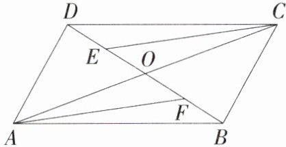 $\therefore OE=\frac{1}{2}OD,OF=\frac{1}{2}OB$,$\therefore OE = OF$,