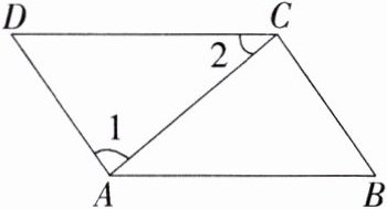 4.一题多解 如图,在四边形ABCD中,AB//DC,∠B=55°,∠1=85°,∠2=40°.