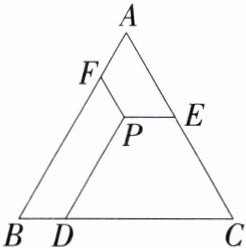 8.(2024湖南怀化新晃期中,9,★☆☆)如图,△ABC是等边三角形,P是三角形内一点,PD//AB,PE//BC,PF//AC,若△ABC的周长为18,则PD+PE+PF= ( )